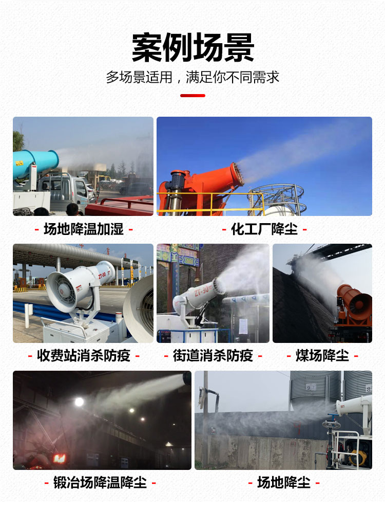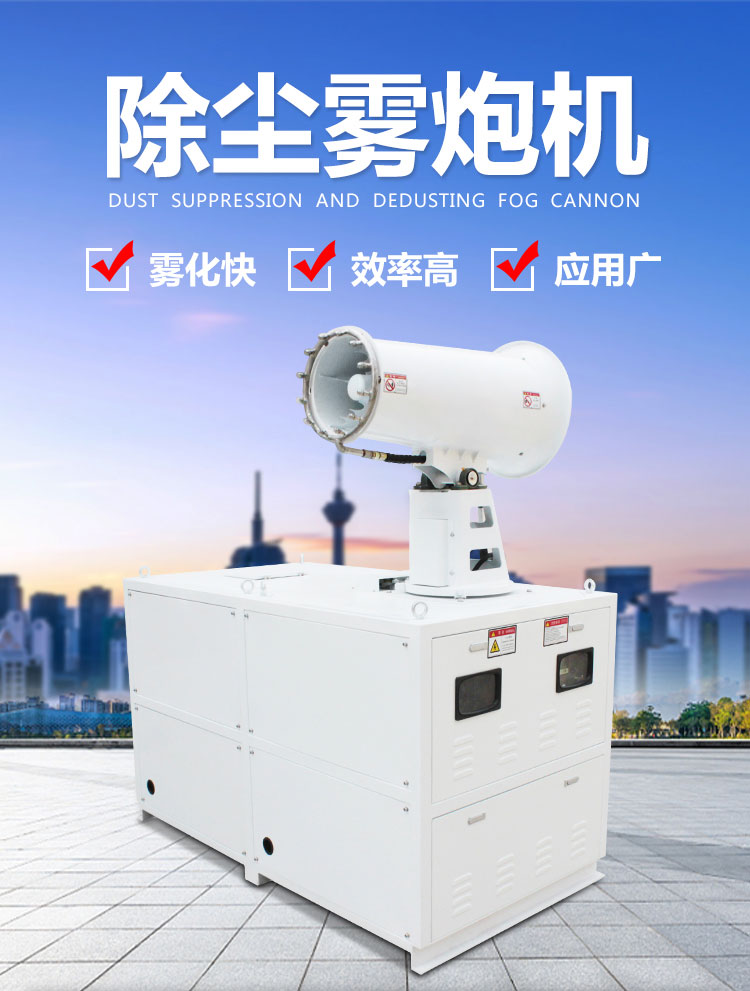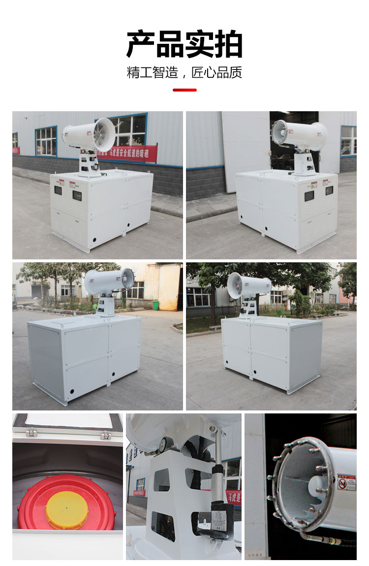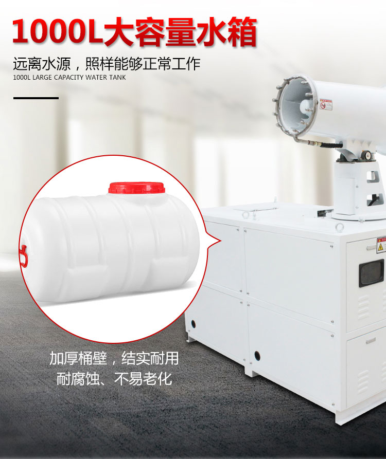 20米除塵霧炮機配備大容量1000L水箱,接在遠離水源處工作,霧化快、效率高、應用廣泛。