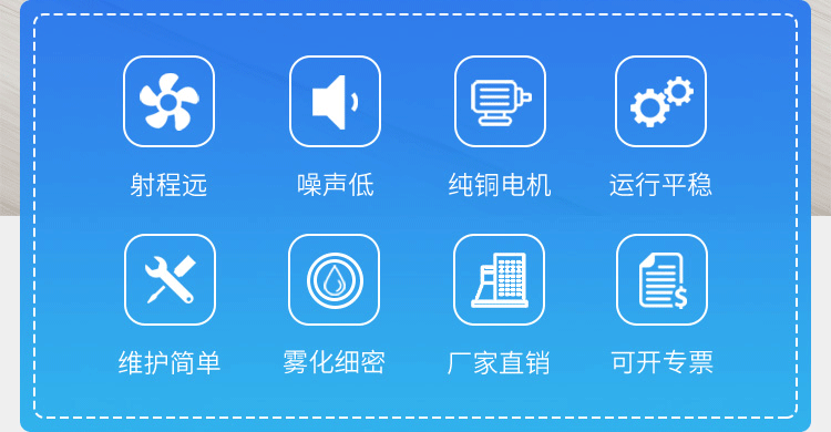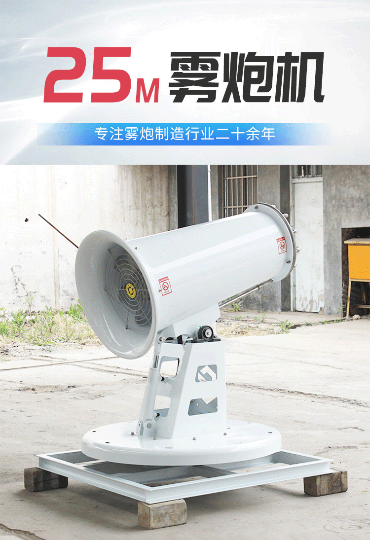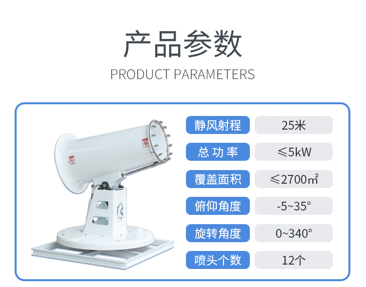 產品特點:固定式霧炮機噴出的霧粒細小,能快速將粉塵抑制;運行平穩、經久耐用。