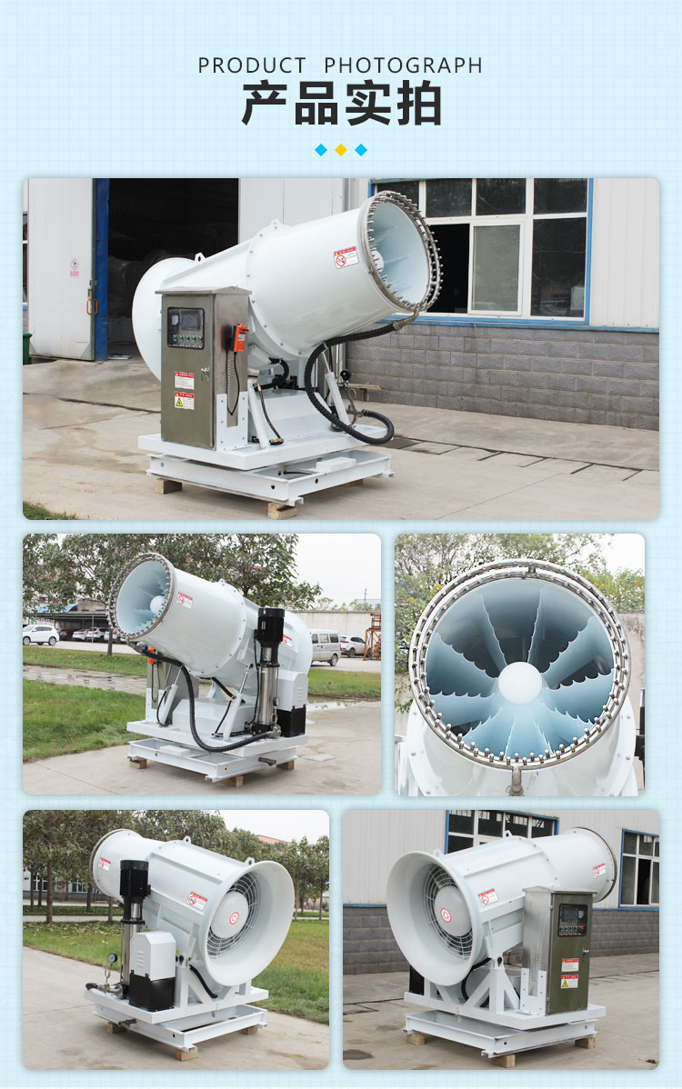 主要用途:用于煤礦場、城市拆遷工地、冶金鋼鐵企業、采礦區域、煤化工企業、水泥廠、火力發電廠、物料和礦產品露天堆放廠、混凝土處理廠、垃圾堆放場、垃圾焚燒廠、沙廠、干式物料倉庫、露天爆破、重度粉塵區域。