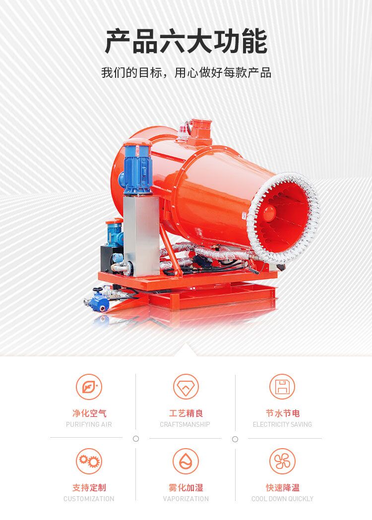 主要用途:用于煤礦場、城市拆遷工地、冶金鋼鐵企業、采礦區域、煤化工企業、水泥廠、火力發電廠、物料和礦產品露天堆放廠、混凝土處理廠、垃圾堆放場、垃圾焚燒廠、沙廠、干式物料倉庫、露天爆破、重度粉塵區域。