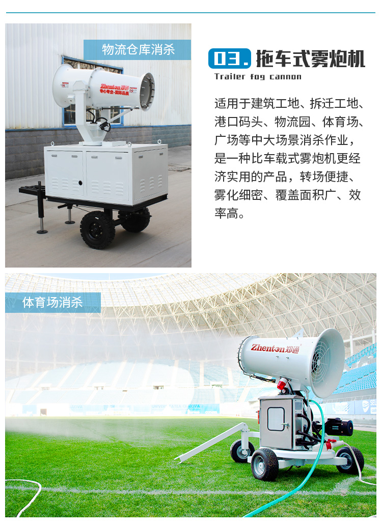 產品特點:全自動手推霧炮機具備耐腐蝕、霧化快、噴霧擴賽快等特點,前輪使用雙定向輪前進更平穩后輪使用雙萬向輪轉向更輕松。