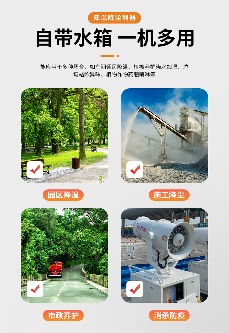 主要用途:適用于城市拆遷工地、冶金鋼鐵企業、采礦區域、煤化工企業、水泥廠、火力發電廠、建筑工地、物料和礦產品露天堆放廠、混凝土處理廠、垃圾堆放場、垃圾焚燒廠、沙廠、干式物料倉庫、露天爆破區域。