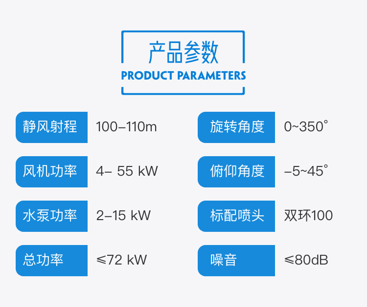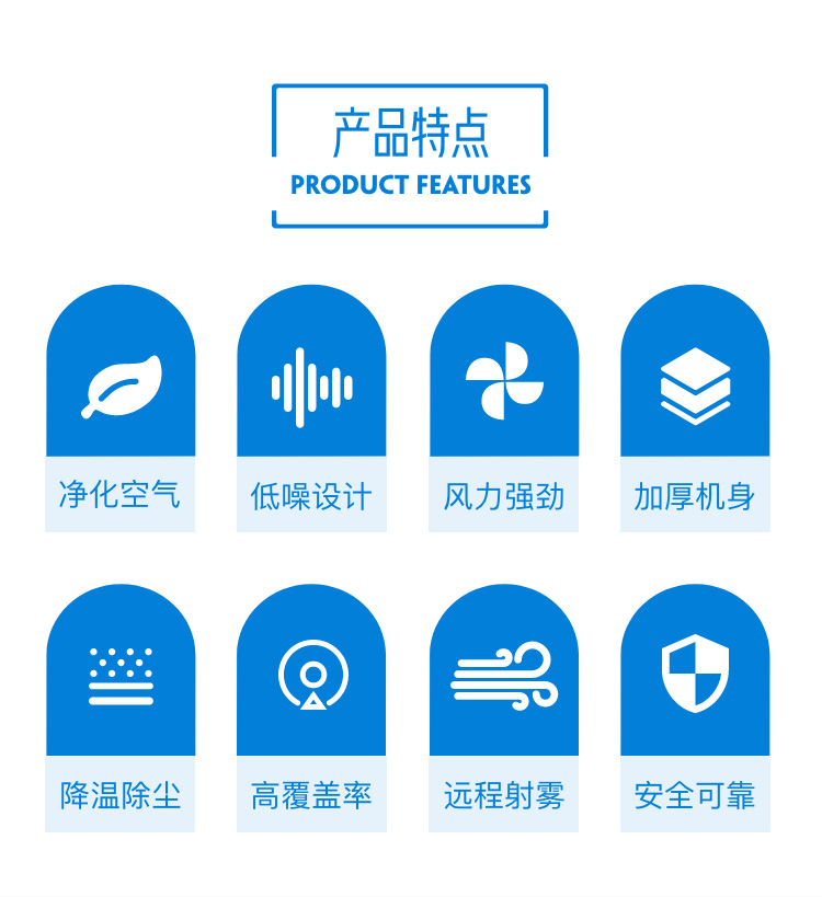 產(chǎn)品特點:100米遠程霧炮機具有風(fēng)力強勁、霧化范圍廣、降塵速度更快的特點;加厚機身設(shè)計,使用安全穩(wěn)定。