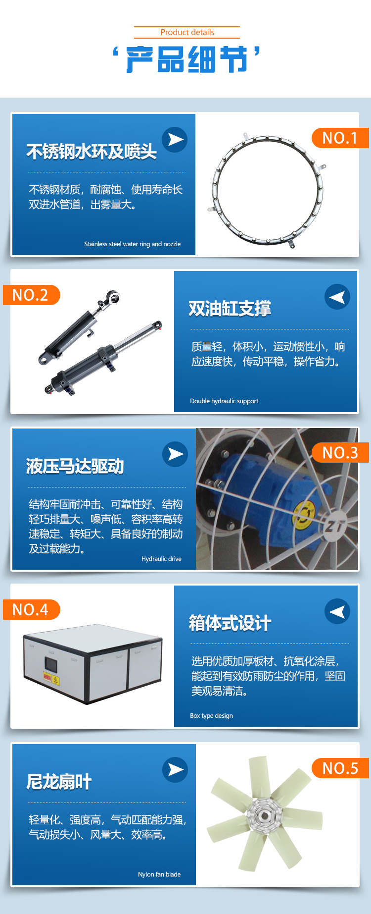 產(chǎn)品特點(diǎn):車載液壓霧炮機(jī)屬于大型霧炮設(shè)計(jì),具有風(fēng)送距離遠(yuǎn)、霧化覆蓋更廣泛的特點(diǎn);整機(jī)采用液壓驅(qū)動,啟動便捷迅速,更安全穩(wěn)定。