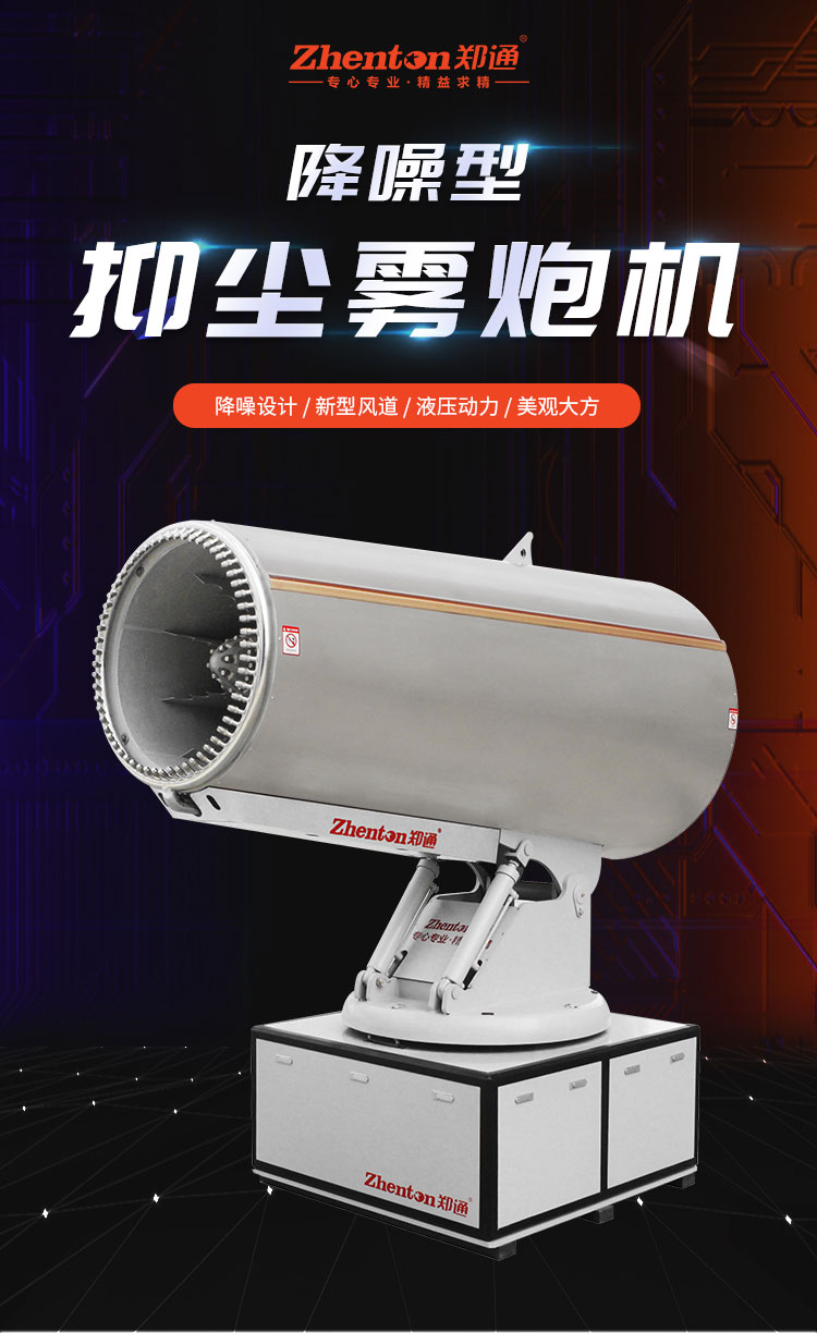產品特點:降噪型液壓霧炮機增加了消音系統,相對于傳統的霧炮機,此設計可以有效降低風筒在電機帶動風葉運行時的嘯噪聲,十分適合在對環境噪聲有要求的環境中進行使用,其工作時實測噪聲低于65dB。