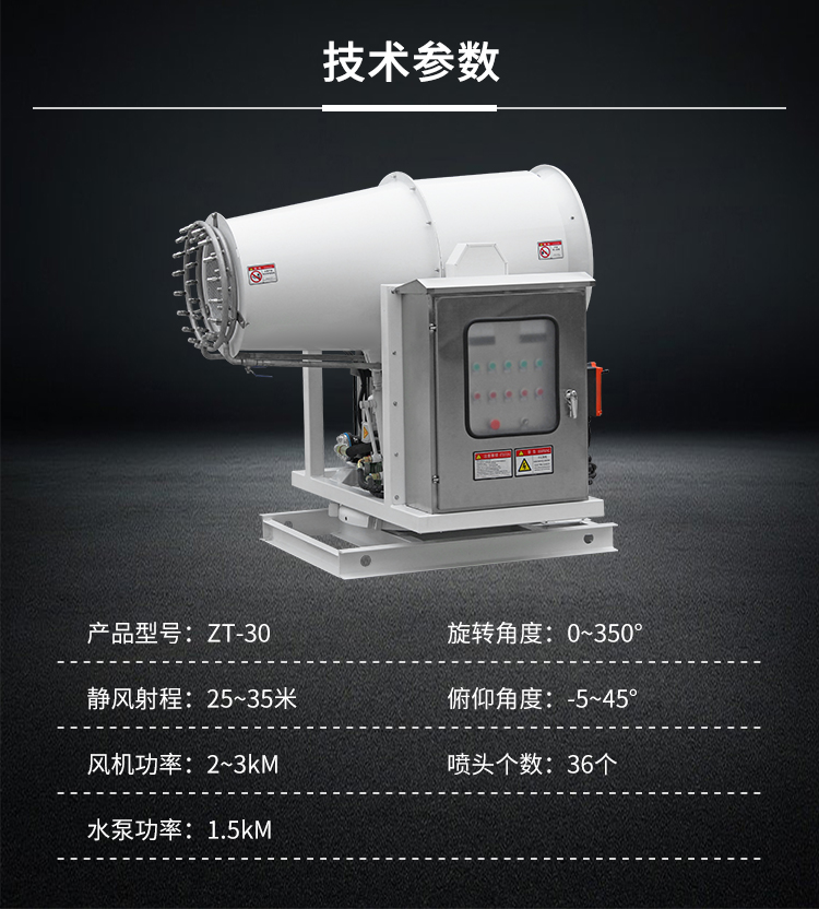 主要用途:建筑工地降塵,水泥廠揚(yáng)塵,農(nóng)田打藥,消毒噴灑,城市道路降塵降溫,煤場礦區(qū)除塵等場景降塵使用。
