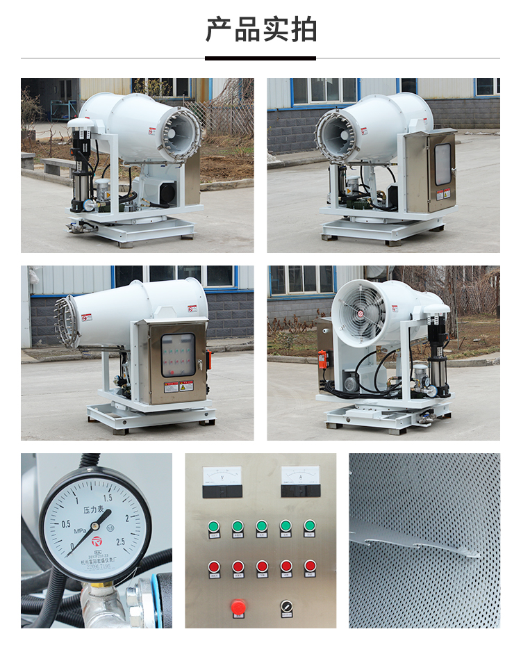 產(chǎn)品特點(diǎn):這款30米低噪音霧炮機(jī),靜風(fēng)射程25-35米,是鄭通霧炮機(jī)廠家生產(chǎn),具有噪音低,噴霧范圍廣,霧化細(xì)等特點(diǎn),由不銹鋼多級離心泵,不銹鋼電控箱,液壓油缸支撐以及不銹鋼水環(huán)及噴頭組成,采用最新消音降噪結(jié)構(gòu)。在建筑工地降塵,水泥廠揚(yáng)塵,農(nóng)田打藥,消毒噴灑,城市道路降塵降溫,煤場礦區(qū)除塵等場景備受歡迎!