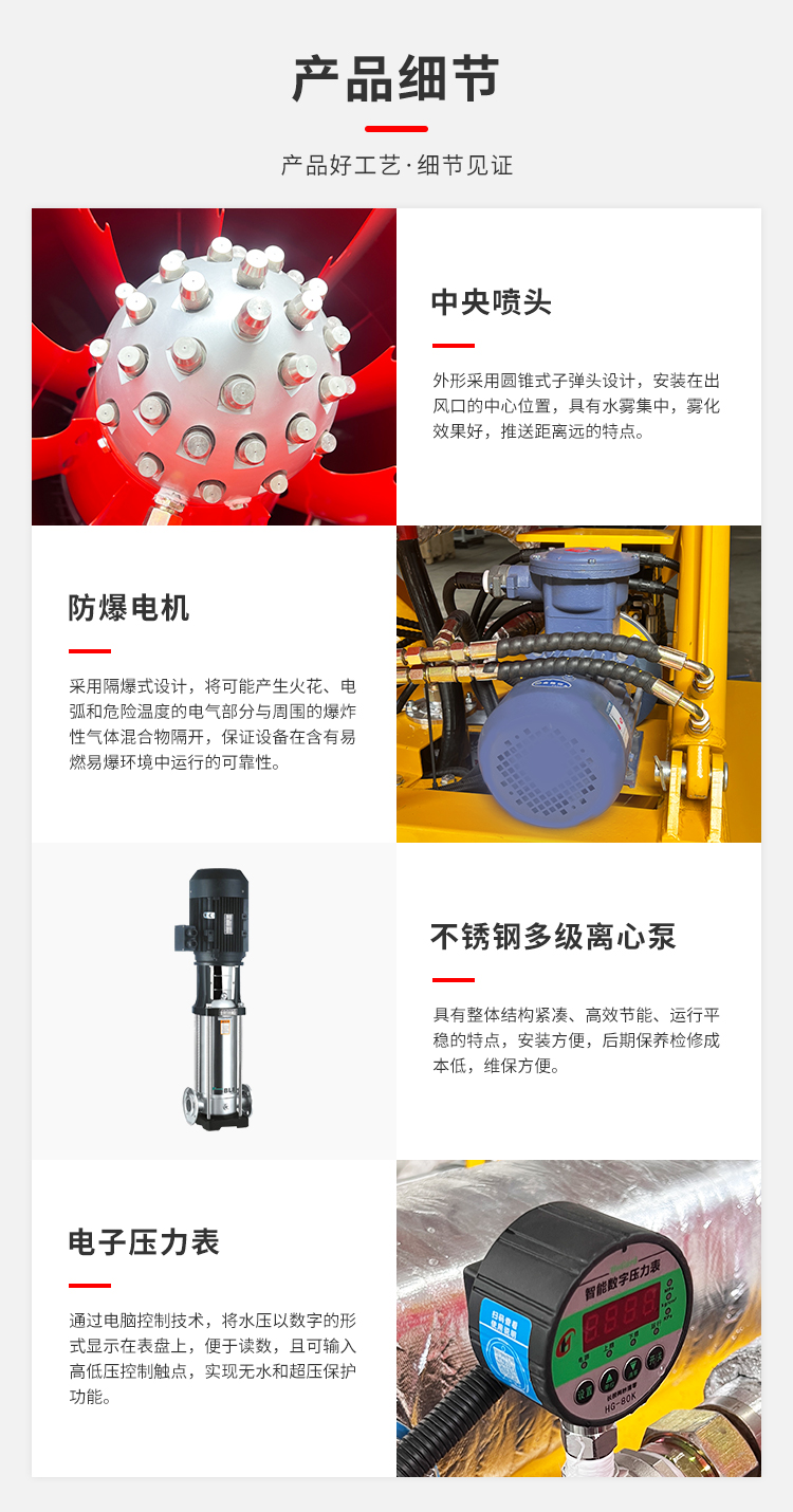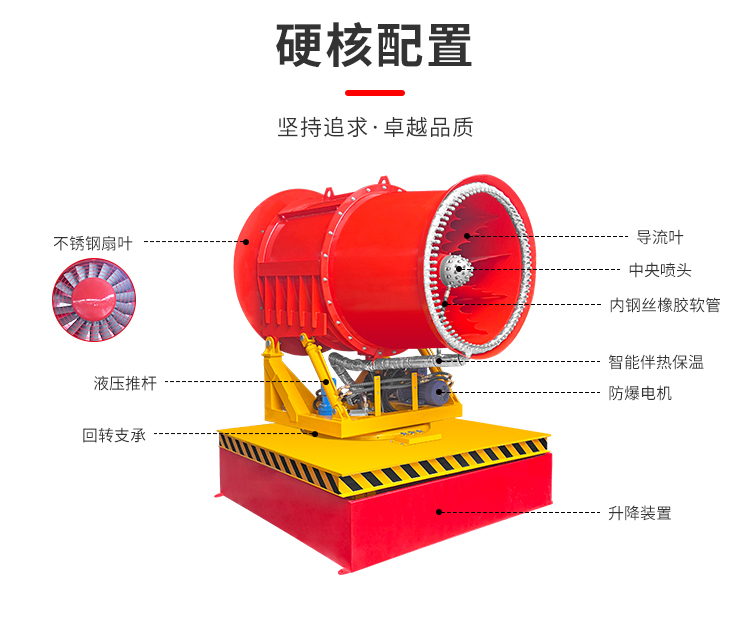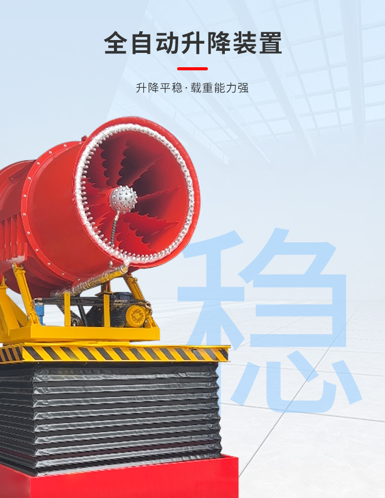 產品特點:這款設備是用于消防滅火上的設備,在設計上采用全自動升降裝置,升降平穩,載重能力強。多功能適用場景,不僅可以用于消防滅火,還能用于大型工業場景,如:石料場降塵,礦山降塵,港口碼頭。