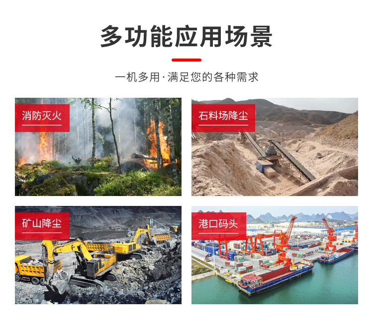 主要用途:消防滅火,石料場降塵,礦山降塵,港口碼頭等場景。