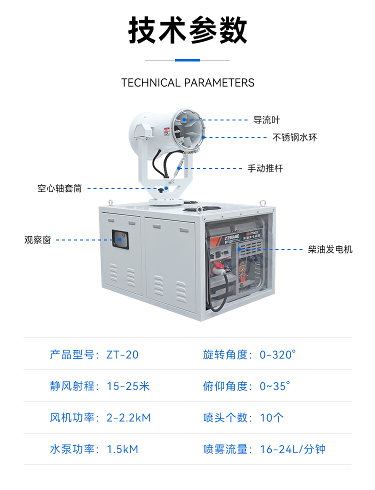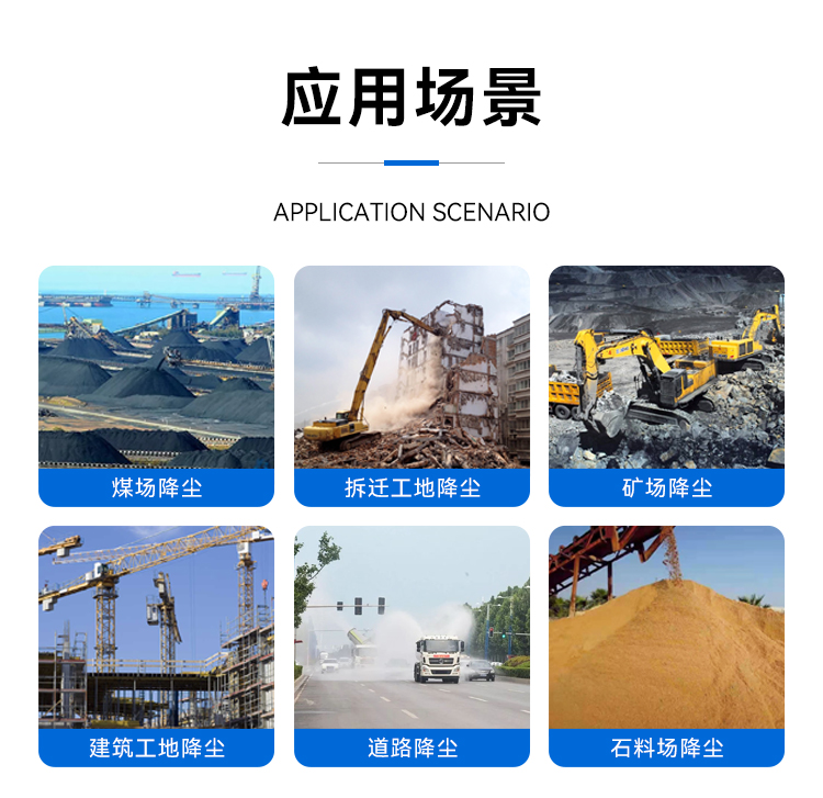 主要用途:工地降塵、石料廠、煤場、礦山、高鹽廢水處理、蒸發塘霧化、鋼廠等場景。