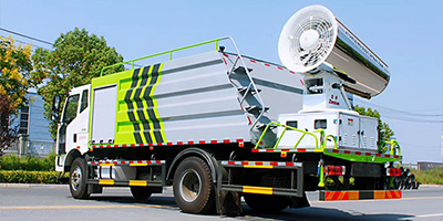 通過高壓水泵把水加壓通過特定的管道輸送到噴頭處,再由風筒產生氣流將微霧粒子輸送出去從而進行噴霧作業。